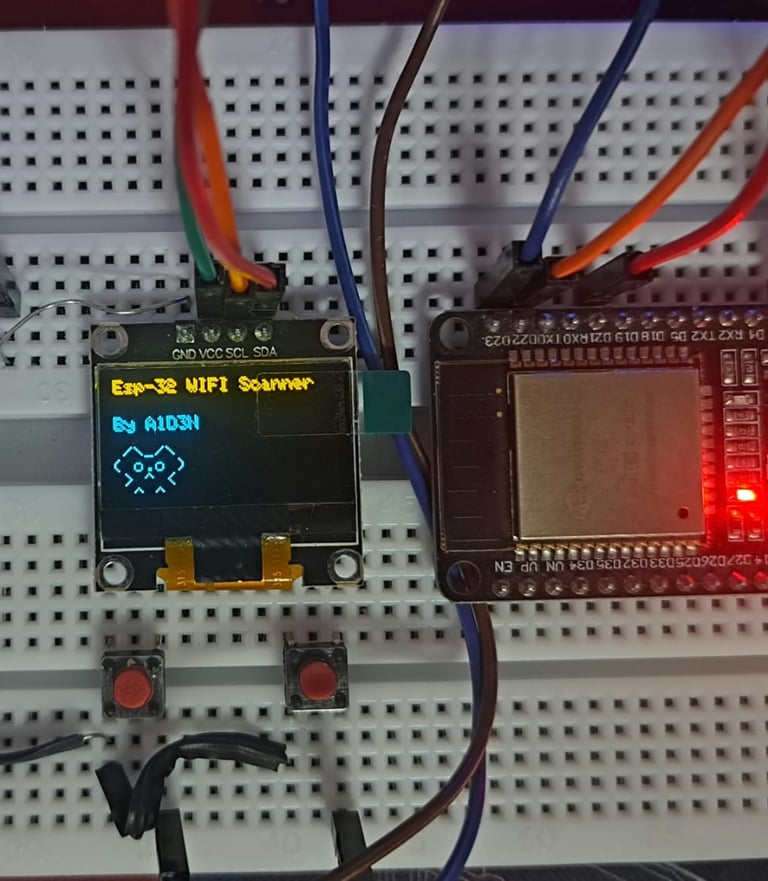 This project implements a Wi-Fi scanner using an ESP32 microcontroller. It allows users to scan for nearby Wi-Fi networks, display information such as SSID, MAC address, security type, RSSI, distance, and channel on an OLED display. Additionally, it features a functionality for rescanning networks at regular intervals.